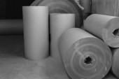 Duży stos papieru drukującego Rolls w Magazynie. Koncepcja produkcji papieru i tektury.
