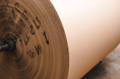 Produkty i tektura falista. Fabryka do produkcji i przetwarzania papieru. Odbiór, stosy. Wybiórcze skupienie. Pojemność i opakowanie. zapasy
