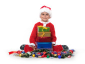 chłopiec trzyma prezent na Boże Narodzenie