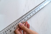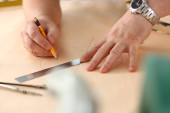 linijka trzymająca dłoń i ołówek sprzęgła z tłem płótna