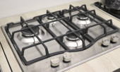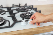 Pusty piec gazowy we wnętrzu kuchni. Zamknij się..