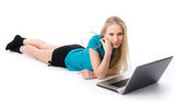 młode sexy dziewczyna z laptopa na białym tle