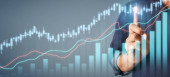 Biznesmen zaplanować wzrost wykresu i wzrost pozytywnych wskaźników na wykresie w swojej działalności