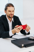 Zdjęcie "Zły biznesmen patrząc w kamerę pozbywając się smartfona w miejscu pracy" może być wykorzystywane do celów osobistych i komercyjnych zgodnie z warunkami zakupionej licencji Royalty-free. Obraz jest dostępny do pobrania w jakości wysokiej rozdzielczości do 5760x3840.