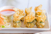 górny kąt przekątnej widok chińskich pierogi na parze z pomarańczowych jaj ryb na górze