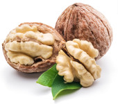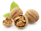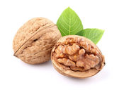 orzechy włoskie z liść na białym tle na białym tle.