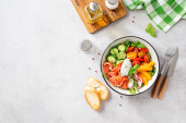 Zdjęcie "Świeża sałatka z rukoli z orzechami sosnowymi, pomidorami wiśniowymi i serem parmezanowym." może być wykorzystywane do celów osobistych i komercyjnych zgodnie z warunkami zakupionej licencji Royalty-free. Obraz jest dostępny do pobrania w jakości wysokiej rozdzielczości do 5760x3840.