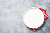 Zdjęcie "Pusty biały talerz i zielona serwetka na białym drewnianym tle. Odbiór. Widok z góry" może być wykorzystywane do celów osobistych i komercyjnych zgodnie z warunkami zakupionej licencji Royalty-free. Obraz jest dostępny do pobrania w jakości wysokiej rozdzielczości do 5760x3840.