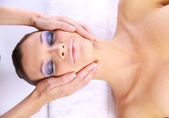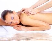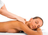 atrakcyjna kobieta zaczyna zabieg spa na białym tle