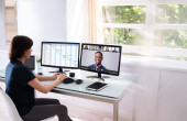 Zdjęcie "African Man Video Konferencja Business Call Na ekranie komputera" może być wykorzystywane do celów osobistych i komercyjnych zgodnie z warunkami zakupionej licencji Royalty-free. Obraz jest dostępny do pobrania w jakości wysokiej rozdzielczości do 5760x3840.