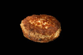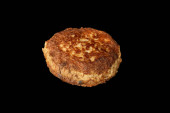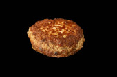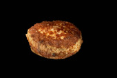 Kotlet smażone mięso izolowane na czarnym tle burger składnik.