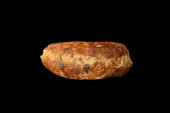 Zdjęcie "Kotlet smażone mięso izolowane na czarnym tle burger składnik." może być wykorzystywane do celów osobistych i komercyjnych zgodnie z warunkami zakupionej licencji Royalty-free. Obraz jest dostępny do pobrania w jakości wysokiej rozdzielczości do 5760x3840.