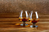 jeden kieliszek brandy na zabytkowe drewniane blat
