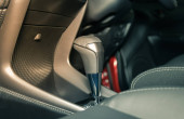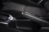 Szary uchwyt przekładni automatycznej we wnętrzu samochodu na ramie środkowej