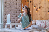 Zdjęcie "wypoczynek, komfort, wypoczynek i koncepcja ludzi - szczęśliwa młoda kobieta czytająca książkę w łóżku w domu sypialnia" może być wykorzystywane do celów osobistych i komercyjnych zgodnie z warunkami zakupionej licencji Royalty-free. Obraz jest dostępny do pobrania w jakości wysokiej rozdzielczości do 5760x3840.