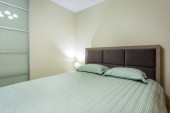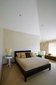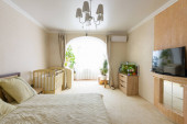 Ogólny plan przestronnej, jasnej, przytulnej sypialni