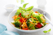 Sałatka warzywna, świeża z gotowanymi brokułami, warzywami i warzywami