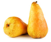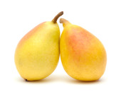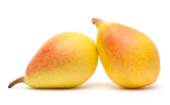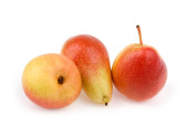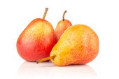 Małe gruszki czerwone i żółte izolowane na białym