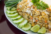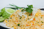 Zdjęcie "Tajski smażony ryż z jaja, kurczak, ogórek i lipa" może być wykorzystywane do celów osobistych i komercyjnych zgodnie z warunkami zakupionej licencji Royalty-free. Obraz jest dostępny do pobrania w jakości wysokiej rozdzielczości do 5760x3840.