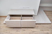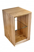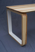Żywe krawędzi wiązu płyta sofa boczna stół w nowoczesnym salonie. Nowoczesne meble z bliska