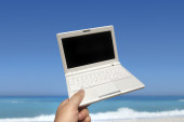 biały laptopa w przyrodzie
