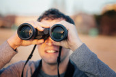 Zdjęcie "Mężczyzna z lornetką na zewnątrz" może być wykorzystywane do celów osobistych i komercyjnych zgodnie z warunkami zakupionej licencji Royalty-free. Obraz jest dostępny do pobrania w jakości wysokiej rozdzielczości do 5760x3840.