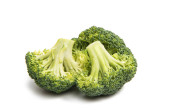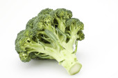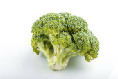 Świeże zielone brokuły izolowane na białym tle, widok z boku, zbliżenie.