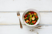 Zdjęcie "Gotowane krewetki lub krewetki i małe ośmiornice z ziołami na niebieskiej ceramicznej płytce na szarym tle betonu i niebieskim tekstyliów. Widok boczny, przestrzeń kopiowania." może być wykorzystywane do celów osobistych i komercyjnych zgodnie z warunkami zakupionej licencji Royalty-free. Obraz jest dostępny do pobrania w jakości wysokiej rozdzielczości do 5760x3840.