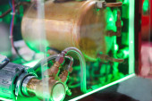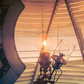 Vintage Żarówka elektryczna z żarnikiem wewnątrz projektora w kształcie otworu.