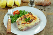 Paupietka drobiowa, groszek i marchewka na talerzu