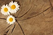 tło dla tekstu papieru rzemieślniczego na drewnianym tle z dużymi i małymi stokrotkami