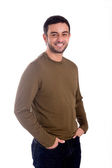 Portret szczęśliwego młodego, przystojnego Persa uśmiechającego się z skrzyżowanymi ramionami