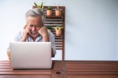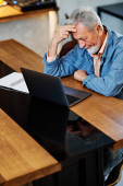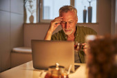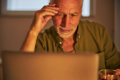 Poważny starszy pan zaniepokojony i patrzący na swój tablet