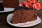 Pyszne ciasto czekoladowe na tabliczce na stół szczegół