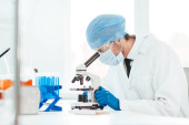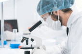 Zamknij się. grupa naukowców pracujących nad stworzeniem nowej szczepionki.