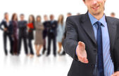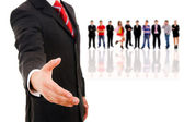 biznesmen z otwartą ręką gotowy do zawarcia umowy