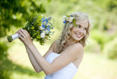 dziewczyna piękna wiosna kwiaty na łące
