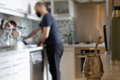 Protetyk wykonujący protezę nogi podczas pracy w laboratorium.