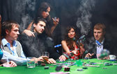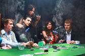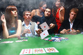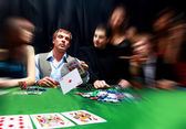 stylowy mężczyzna w czarnym garniturze fałdy dwie karty w poker w kasynie w las vegas na