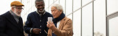 widok boczny seniora w jesiennych ubraniach i okularach na peronie metra z rozmazanym pociągiem
