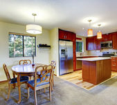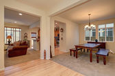 Zdjęcie "Projekt pokoju dziennego. Widok na kuchnia i jadalnia" może być wykorzystywane do celów osobistych i komercyjnych zgodnie z warunkami zakupionej licencji Royalty-free. Obraz jest dostępny do pobrania w jakości wysokiej rozdzielczości do 5760x3840.