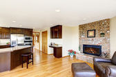 Projekt pokoju dziennego. Widok na kuchnia i jadalnia