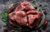 Zdjęcie "Świeże surowe mięso na starej drewnianej desce z przyprawami. Mięso ze steków jagnięcych bez kości" może być wykorzystywane do celów osobistych i komercyjnych zgodnie z warunkami zakupionej licencji Royalty-free. Obraz jest dostępny do pobrania w jakości wysokiej rozdzielczości do 5760x3840.