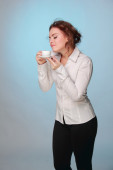 portret pięknej młodej kobiety blondynka w studio na białym tle.