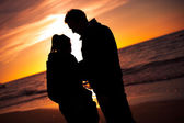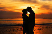 Zdjęcie romantyczne pocałunki para podczas zachodu słońca