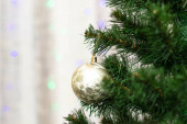 Złote Boże Narodzenie tło nieostre światła z dekorowanym drzewem