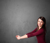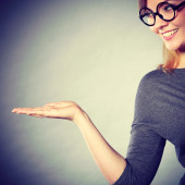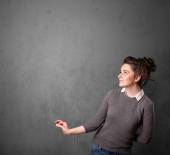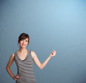 kobieta gestykulacji z kopia miejsce