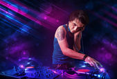 młodych dj gra na gramofonach efektami światła kolor