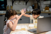 Zdjęcie "Azji mała dziewczynka robi pracę domową na laptopie i poprosić matkę, aby jej pomóc." może być wykorzystywane do celów osobistych i komercyjnych zgodnie z warunkami zakupionej licencji Royalty-free. Obraz jest dostępny do pobrania w jakości wysokiej rozdzielczości do 5760x3840.