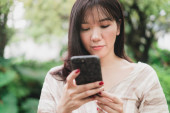 Zdjęcie "wesoły Azji kobieta nosić kapelusz czat na smartfon w park." może być wykorzystywane do celów osobistych i komercyjnych zgodnie z warunkami zakupionej licencji Royalty-free. Obraz jest dostępny do pobrania w jakości wysokiej rozdzielczości do 5760x3840.